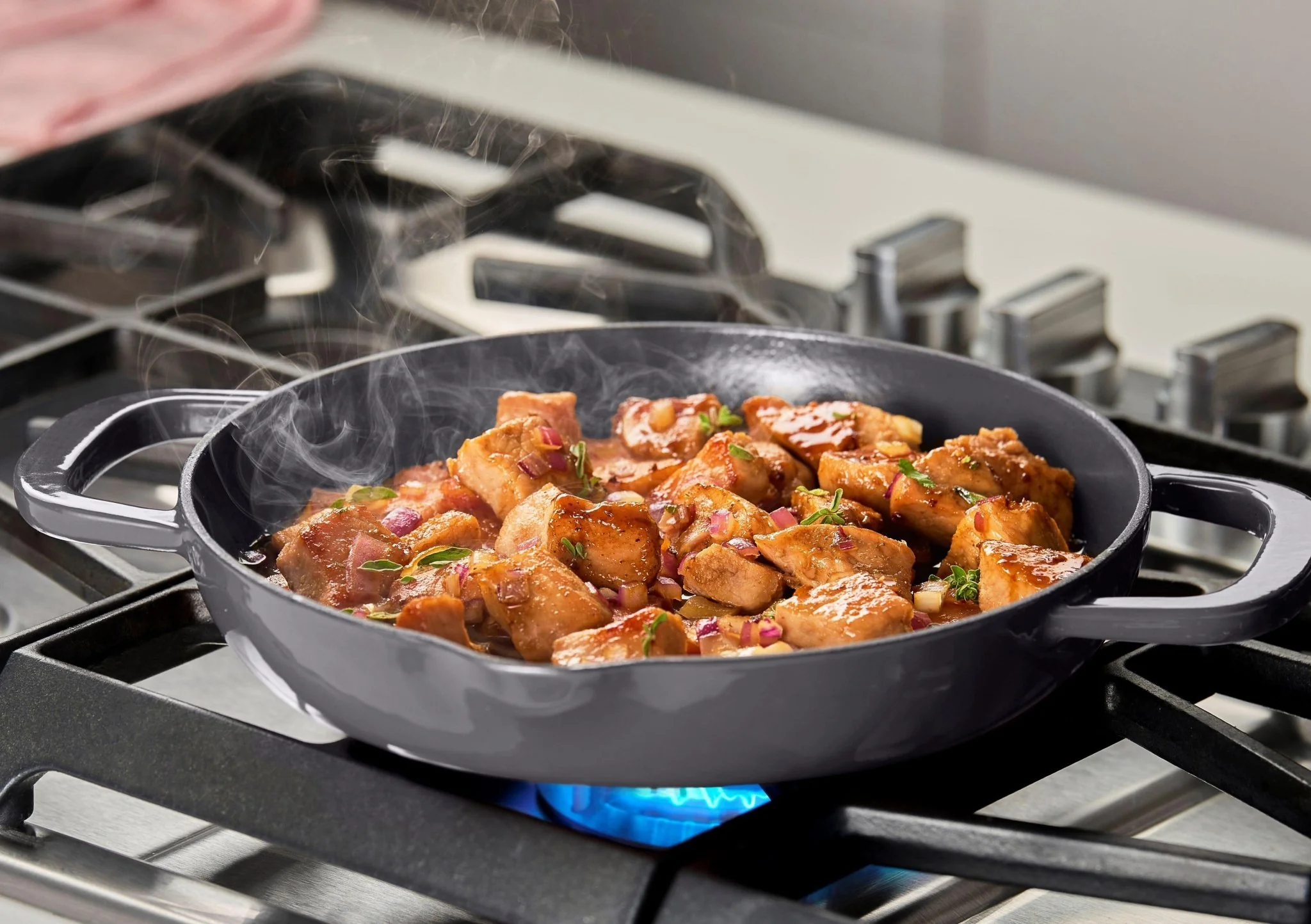 Ustensile polyvalent, elle est parfaite pour saisir, cuire au four, griller, rôtir, braiser, frire, mijoter et plus encore. Adaptée à toutes les sources de chaleur elle va également au réfrigérateur, congélateur et sera très élégante pour le service à table.